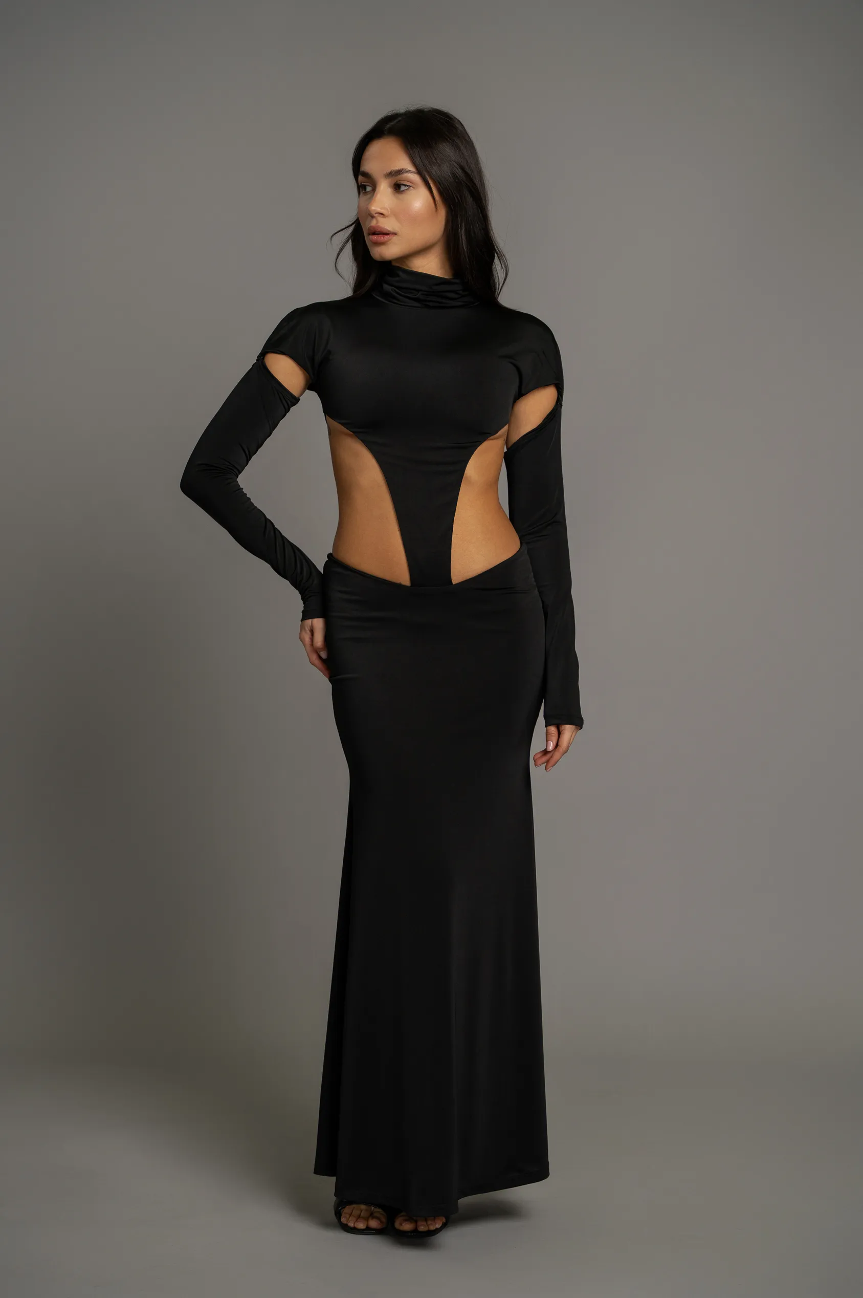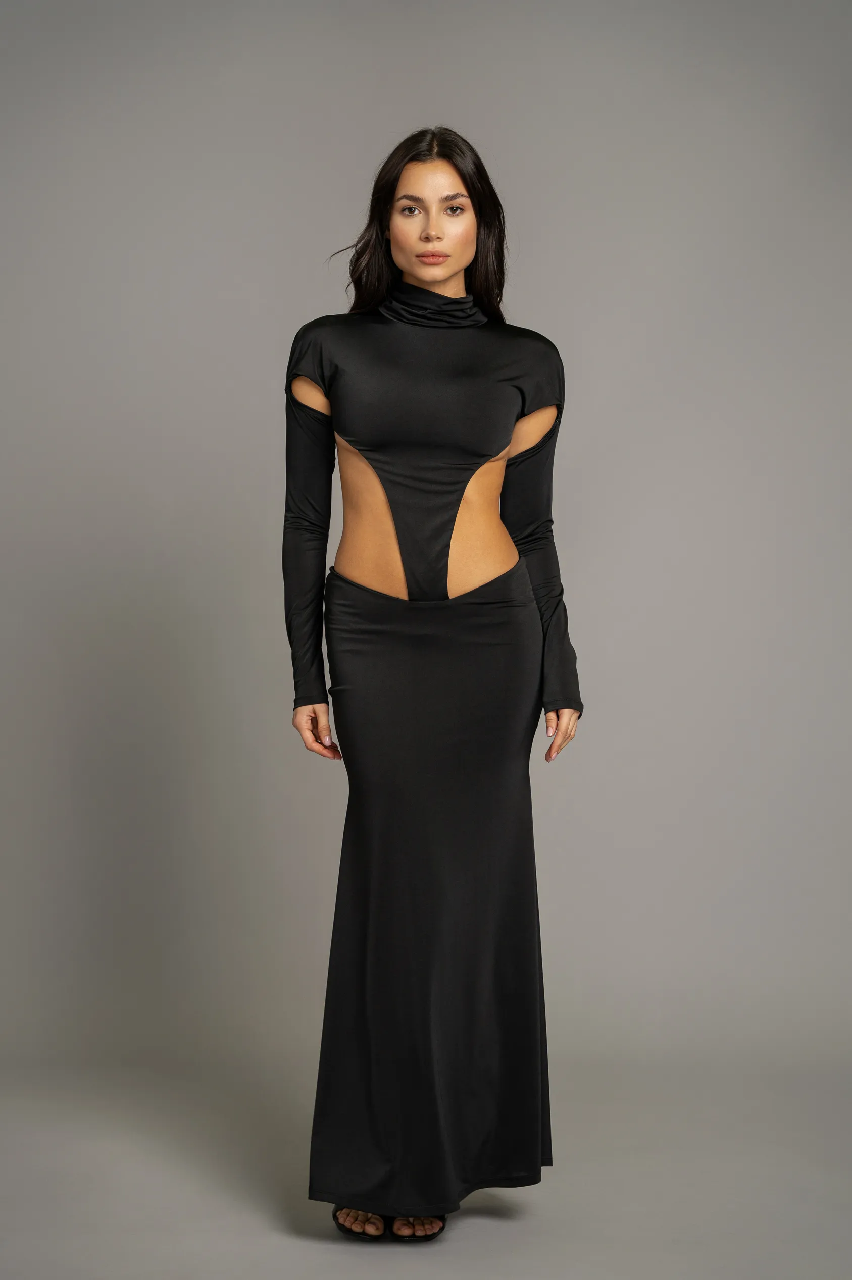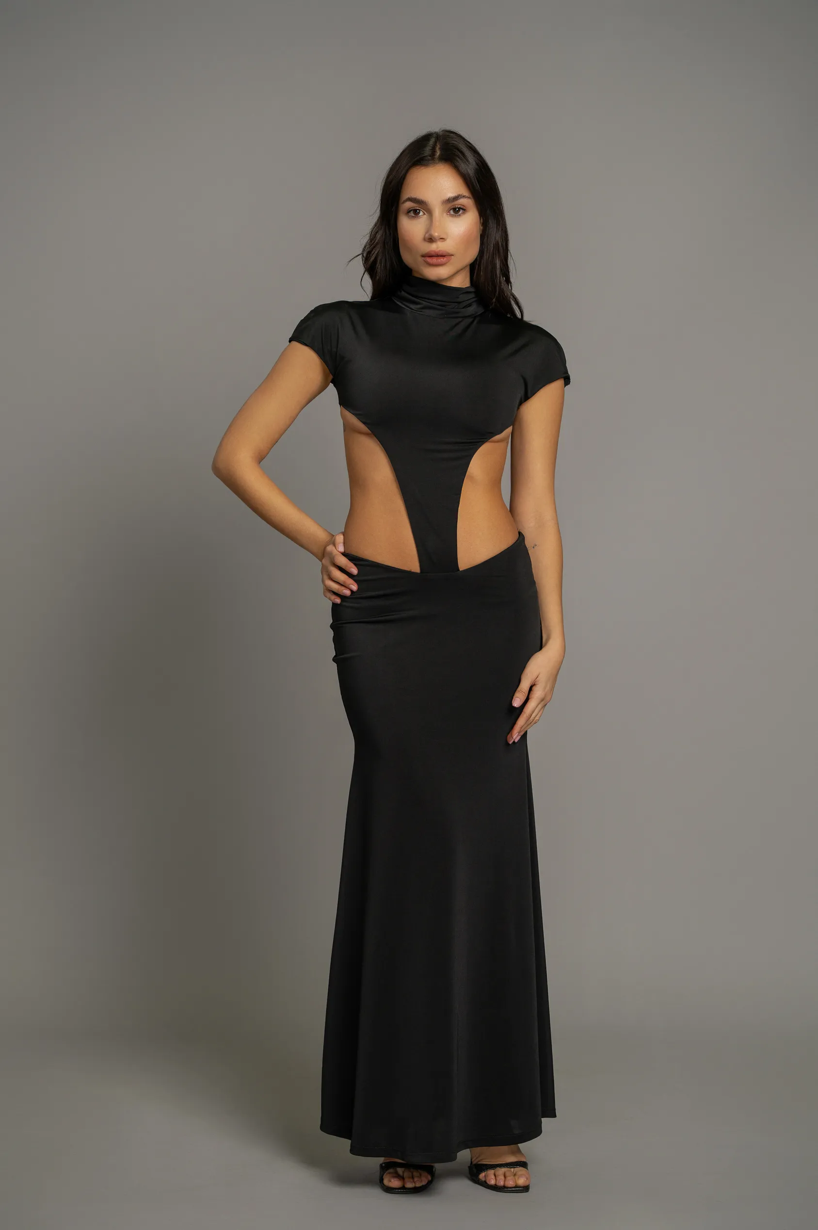 BRENDA ELASTIC MAXI DRESS-BLACK