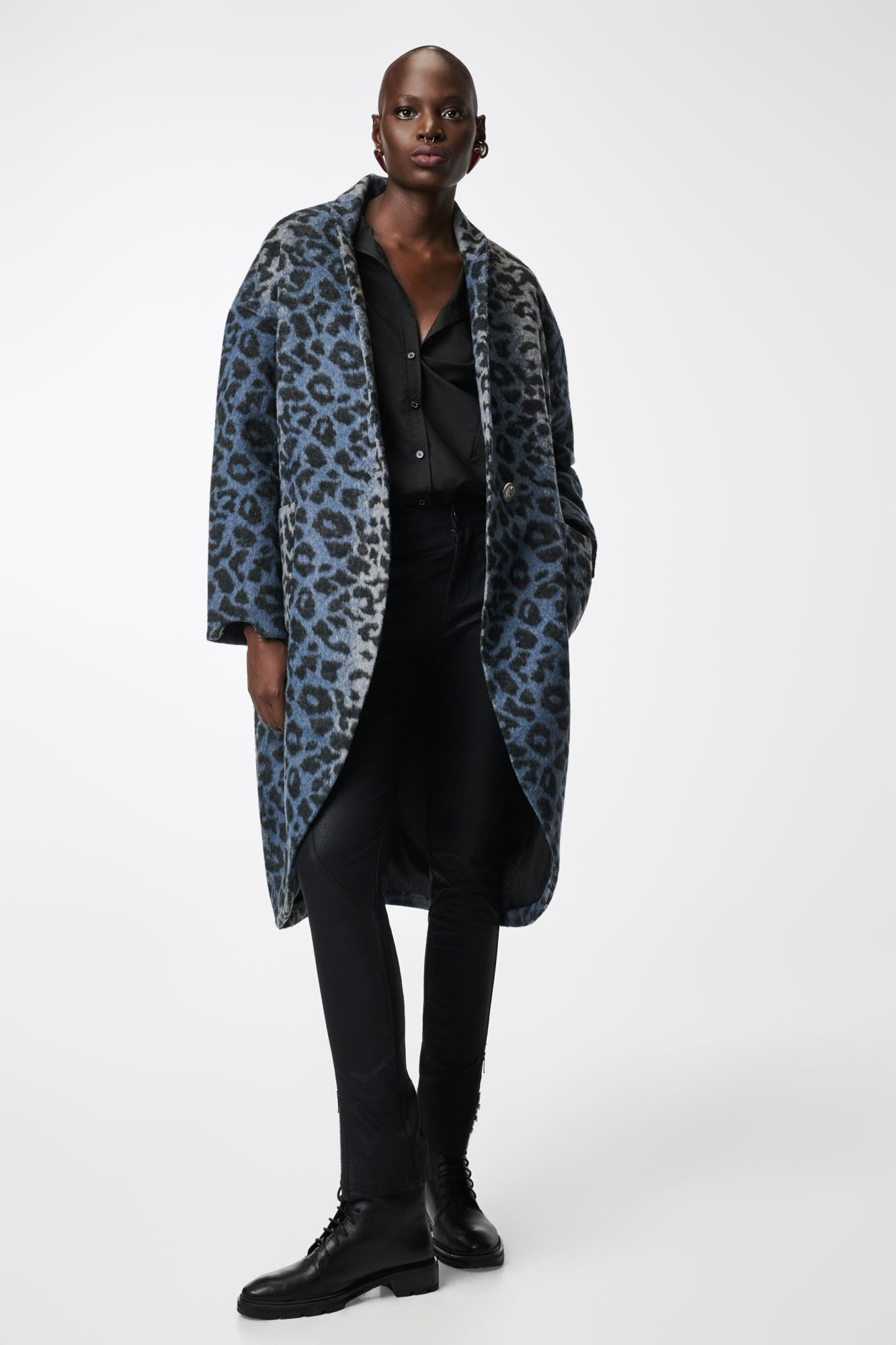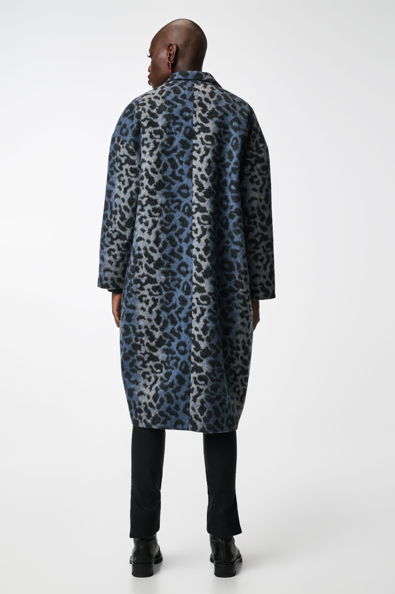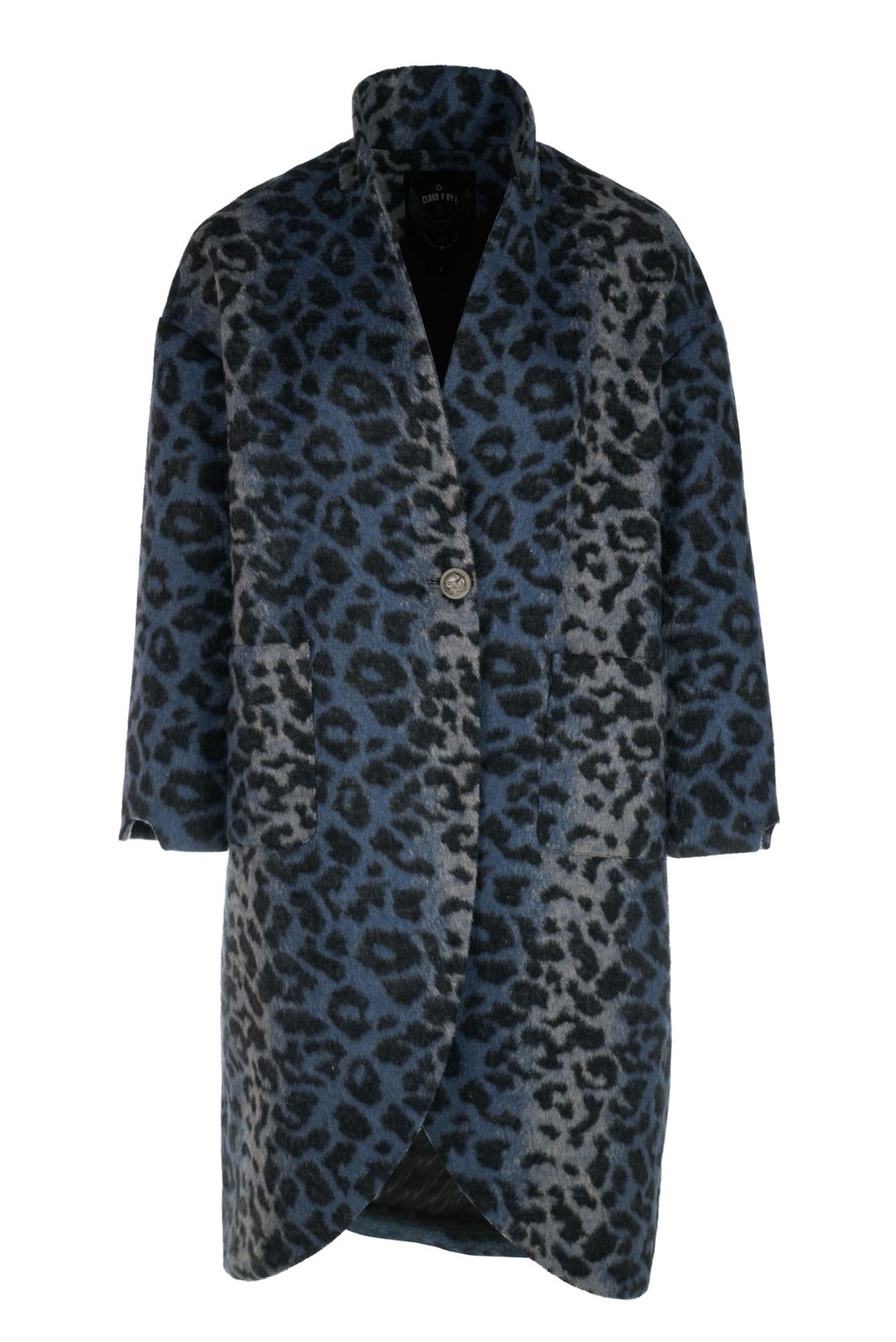 LUMINESCENCE Vintage Μπλε Λεοπάρ Μάλλινο Παλτό