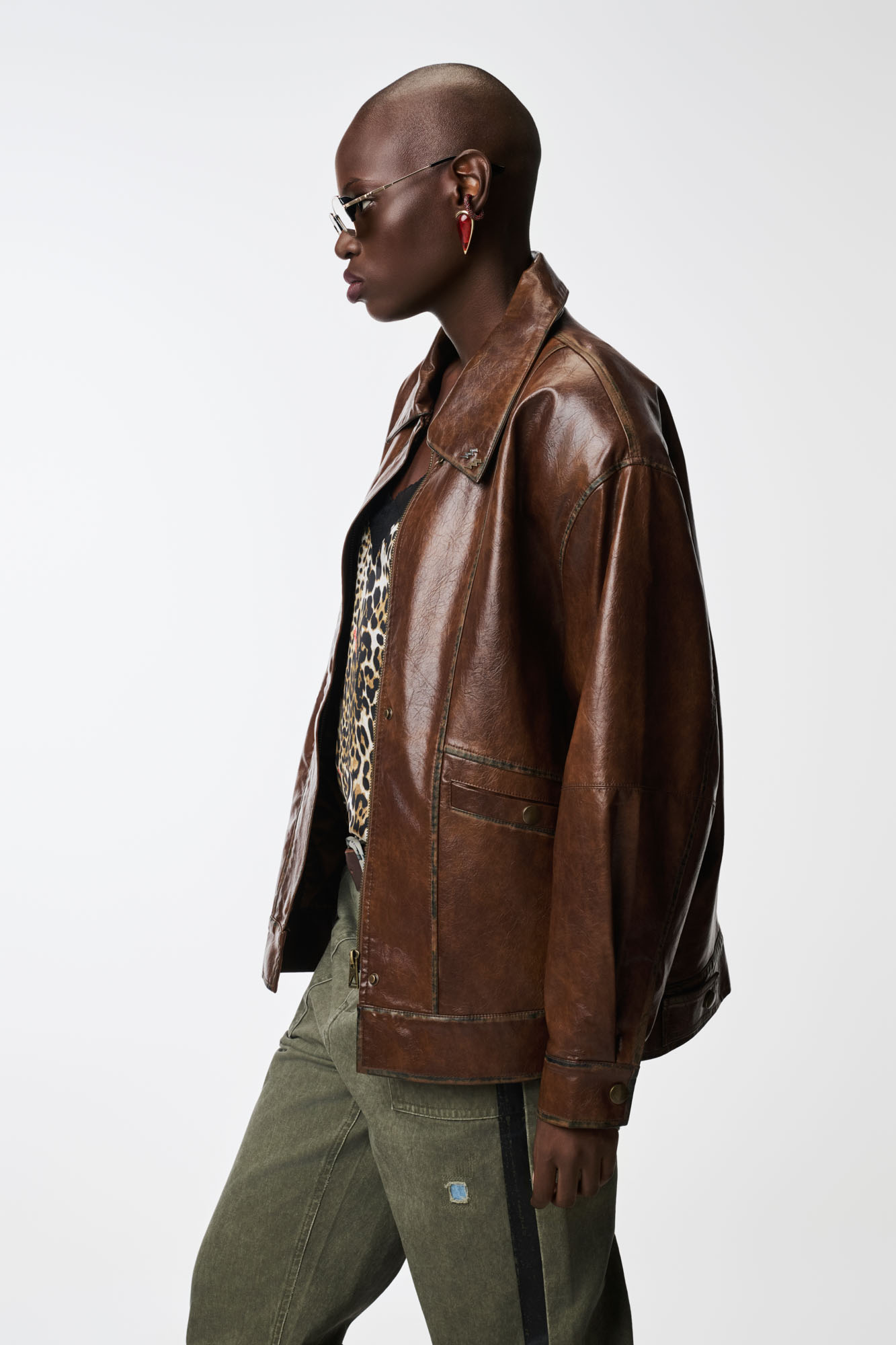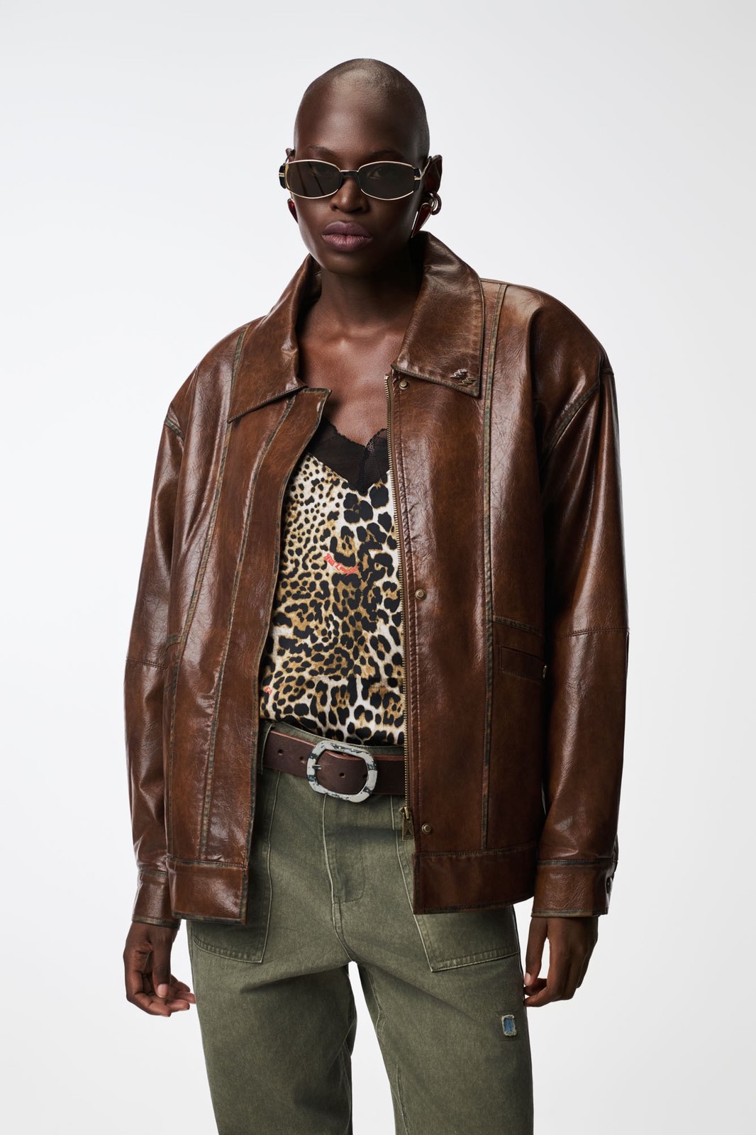 PYRO Καφέ Vegan Δερμάτινο Τζάκετ